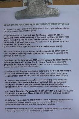 Texto sobre supostos câncer estava em espanholO ex-diretor da PRF dizia ainda que viajava para San Salvador, em voo da Copa Airlines, com o objetivo exclusivo de realizar tratamento médico de radiocirurgia, procedimento que, segundo a declaração, poderia “prolongar o período de vida”. O documento também mencionava autorização médica para a viagem e o porte de medicamentos de uso contínuo.