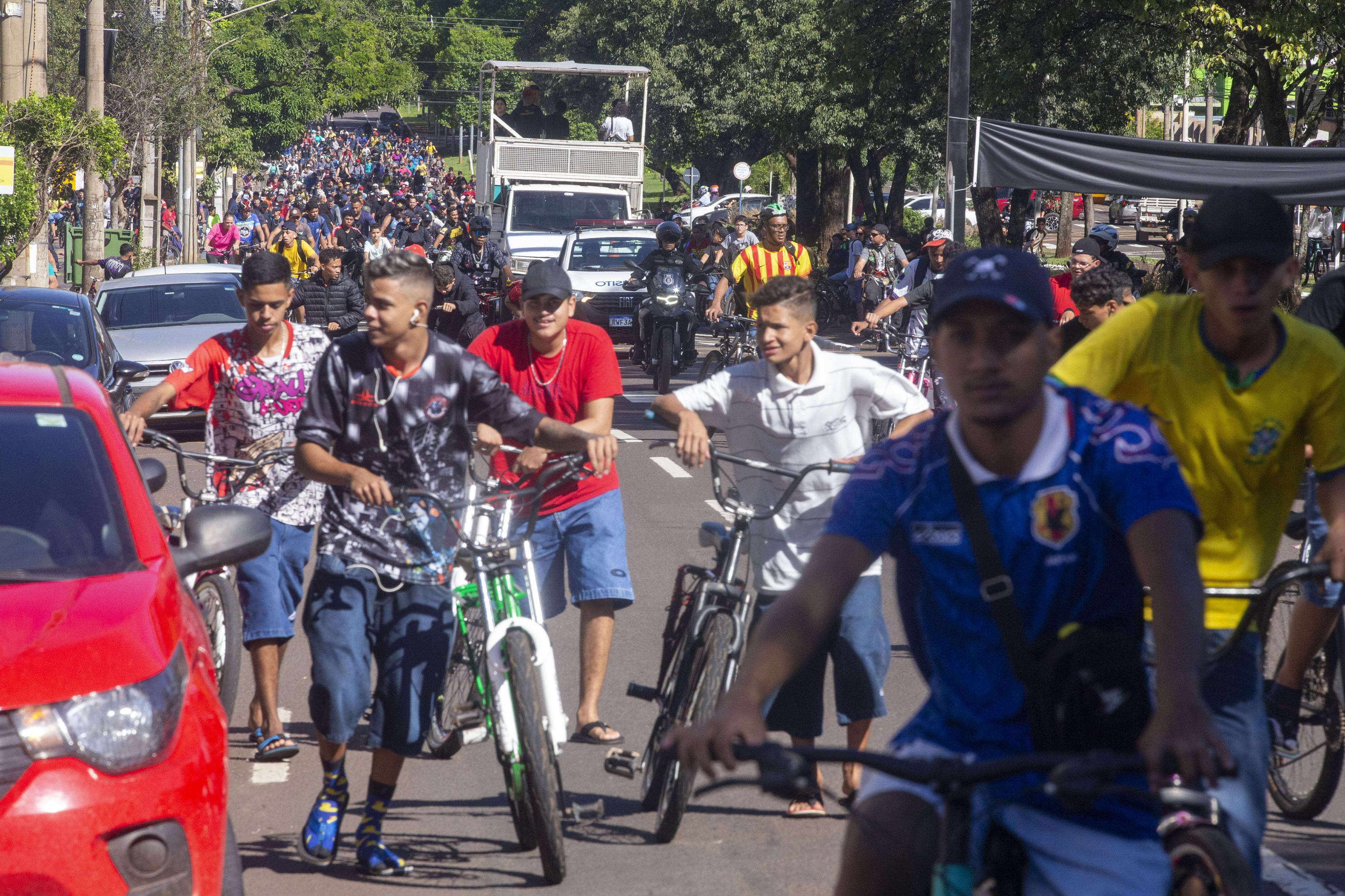 A concentração começou logo cedo na Vila Carvalho e seguiu pela Rui Barbosa até chegar nos altos da Avenida Afonso Pena, ao lado do Parque das Nações Indígenas. Morador da Vila Serradinho, Vailton Leandro contou que está de volta no circuito após 20 anos, e agora junto com seu filho, Eduardo.
