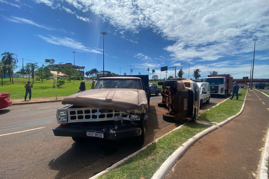 Fiorino atingiu a caminhonete capotada. Foto: Naiara Camargo/Correio do Estado.O condutor, sem controle do veículo, acabou atingindo primeiro uma Volkswagen Saveiro, que pertence à empresa Águas Guariroba, a jogando para fora da pista, depois um caminhão da Coca-Cola e por fim uma Chevrolet S10, que capotou. Uma Fiat Fiorino, pertencente à empresa de limpeza Diversey, não conseguiu frear a tempo e acabou envolvida no acidente.