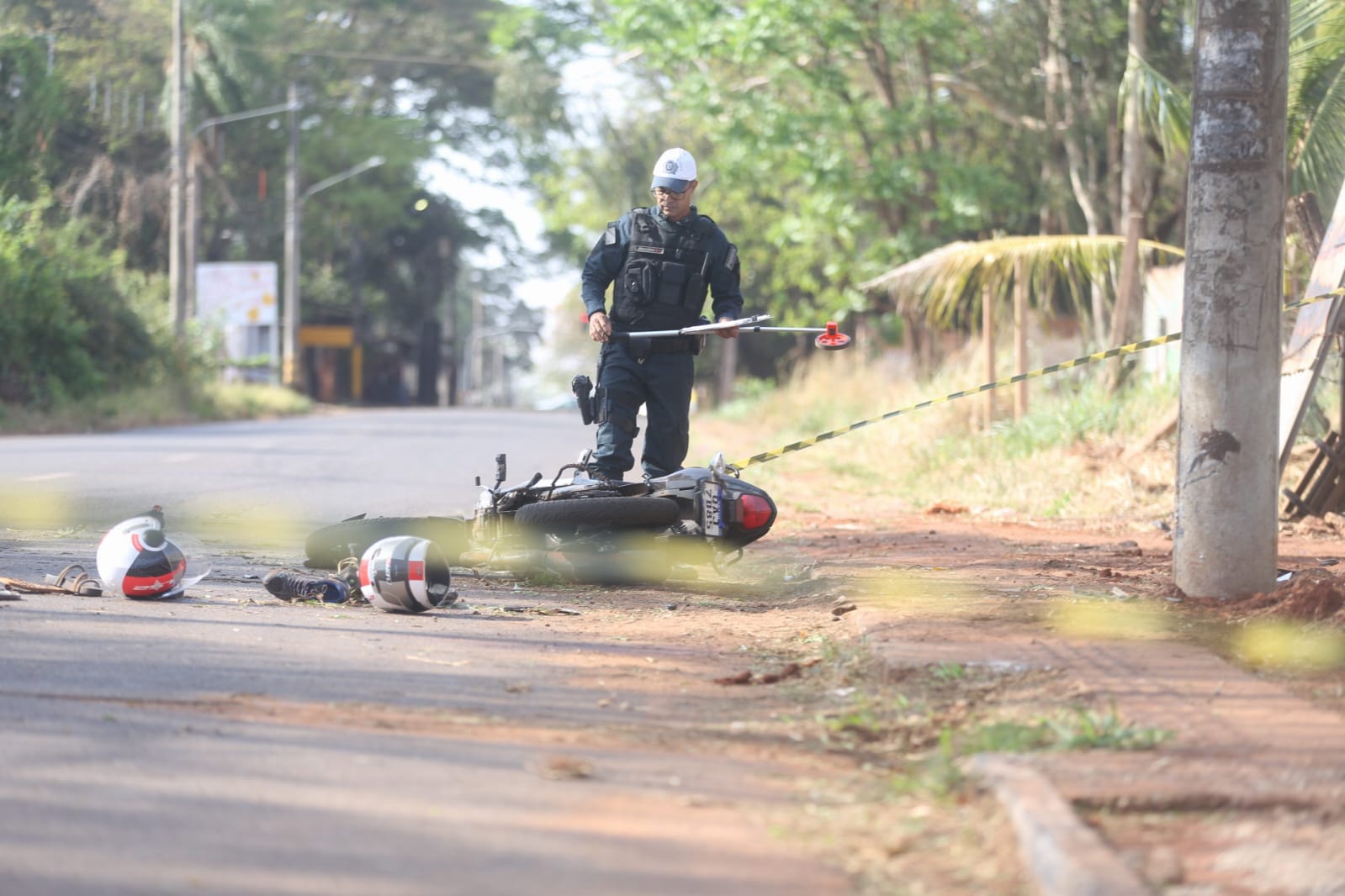 A motocicleta ficou bastante danificada com o impacto. A Polícia Civil deve assumir a investigação para apurar as circunstâncias do acidente.