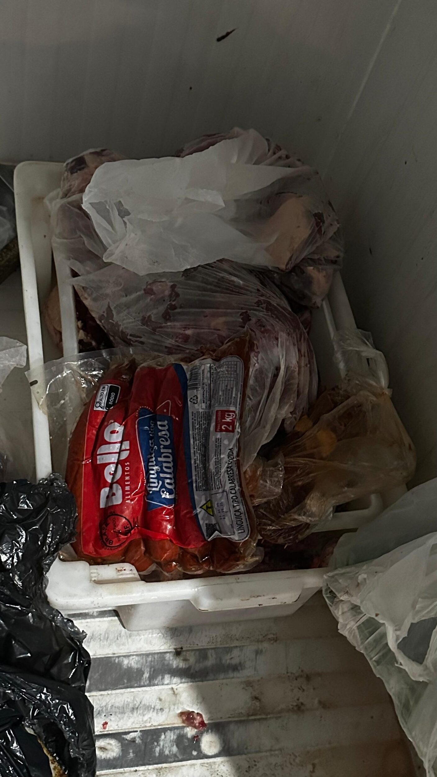 Durante a fiscalização, verificou-se o armazenamento de 385 kg de carnes de bovinos e frango, além da produção de linguiça sem informações sobre a origem, controle de produção ou rastreabilidade do produto.