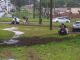 Após a passagem da chuva, ficou visível a marca dos pneus por onde os carros passaram na grama; até motoqueiros cortaram caminho para evitar atravessar o trecho que continuou com água.