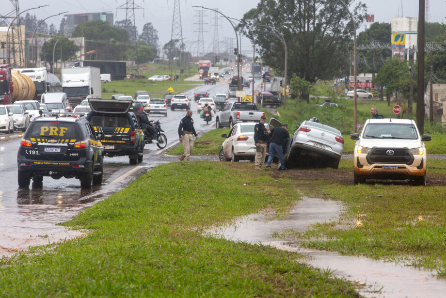 Uma equipe da Polícia Rodoviária Federal (PRF) esteve no local auxiliando na fluidez do trânsito na região, movimentada por onde passam carros de passeio e também caminhões.