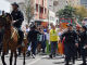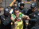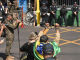Homem que fez encenação crítica de Bolsonaro preso teve que ser contido por policiais. Foto: Paulo Ribas