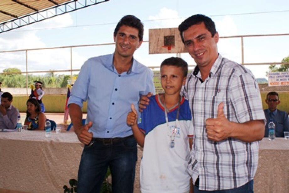 Dois alunos da Escola Municipal Professor Antônio Inácio Furtado Pólo, de Figueirão (MS), foram premiados com medalhas da Olimpíada Brasileira de Astronomia e Astronáutica (OBA). A entrega das medalhas foi feita pelo prefeito Neilo Cunha e o secretário municipal de Educação, José André Cortez Feliciano na inauguração da cobertura da quadra da última sexta-feira (14). "Fico muito feliz em entregar estas medalhas, que foram conseguidas pelo esforço e dedicação dos alunos e seus professores", destaca o prefeito.