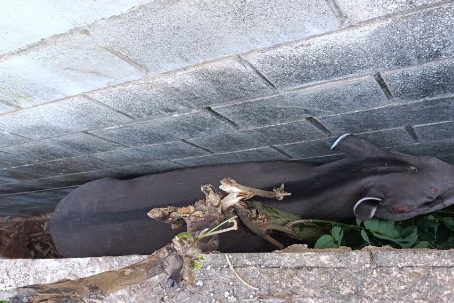 Considerado o maior mamífero terrestre do Brasil, o animal silvestre foi resgatado pela Polícia Militar Ambiental em uma área residencial de Campo Grande
