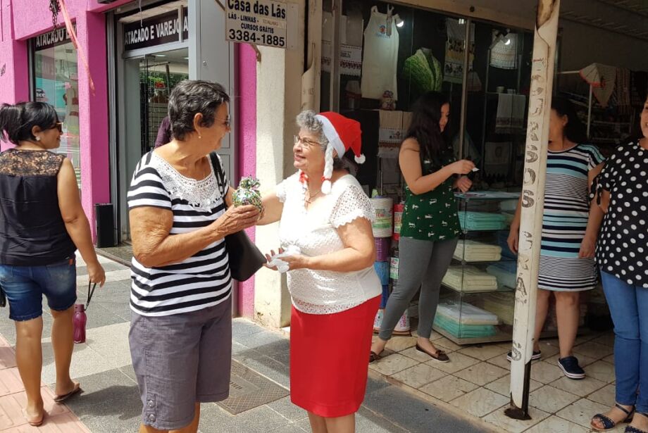 Aos 80 anos, Dona Nilza não dispensa o gorro de Mamãe Noel e a simpatia com quem passa na Rua 14 de Julho, no centro de Campo Grande. Aluna assídua dos cursos gratuitos da Casa das Lãs, ela aproveita as celebrações natalinas para entregar os presentes que compra ao longo do ano, durante as viagens que faz no país.