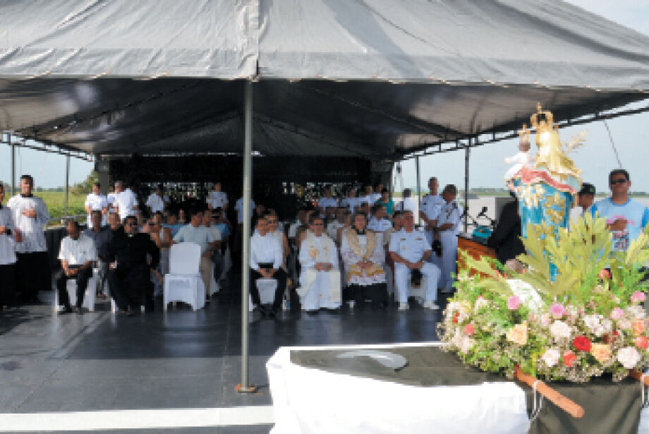 Barco com padres e fiéis da igreja levou a imagem de Nossa Senhora dos Remédios na procissão - Rodolfo César