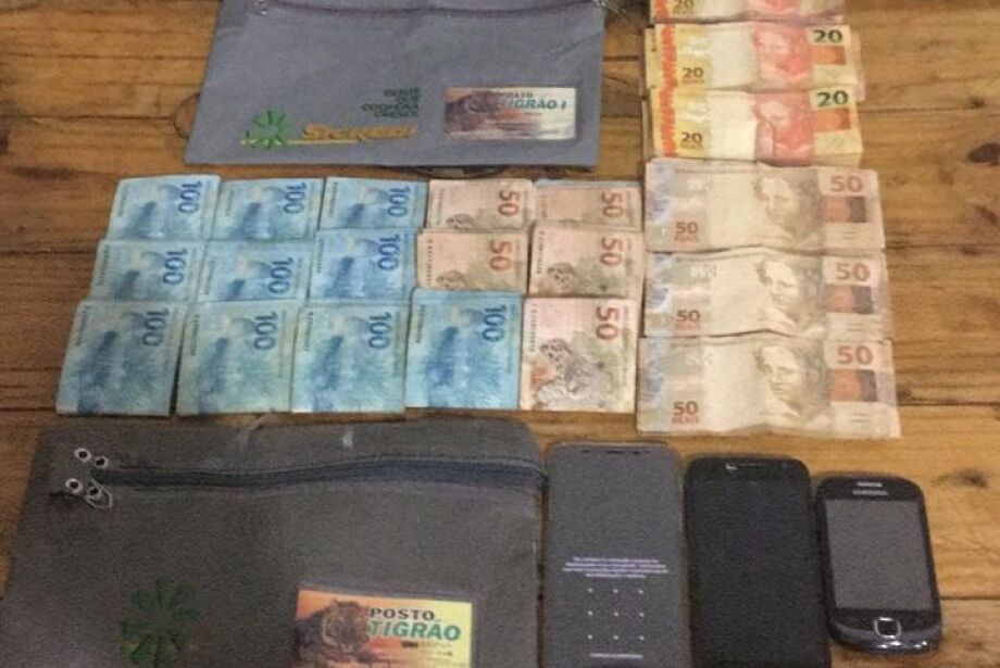 Grande quantidade de dinheiro nas carteiras e em uma sacola foi encontrada com o trio, além de aproximadamente R$ 18 mil dentro cueca de um dos suspeitos. Dentro da residência foi encontrada a moto utilizada no roubo e também o malote vazio, papéis da vítima, roupas utilizadas, capacetes e uma espingarda de pressão torneada para caber munições calibre 22. No total, com os três foi encontrado R$ 20,3 mil.