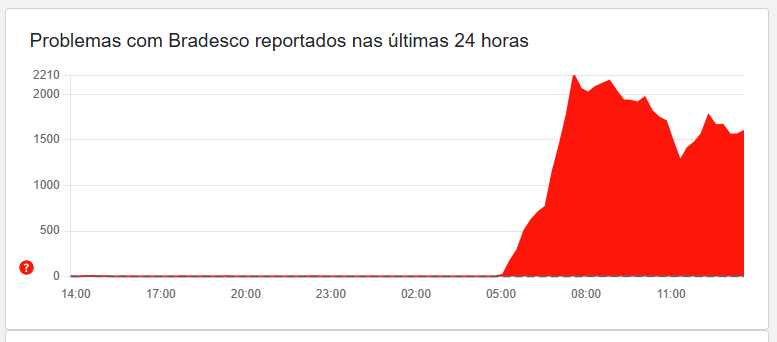 De acordo com o site Downdetector, que monitora o funcionamento de serviços online em tempo real, foram registradas mais de 2 mil notificações de problemas com o aplicativo do Bradesco até as 9h desta sexta-feira.