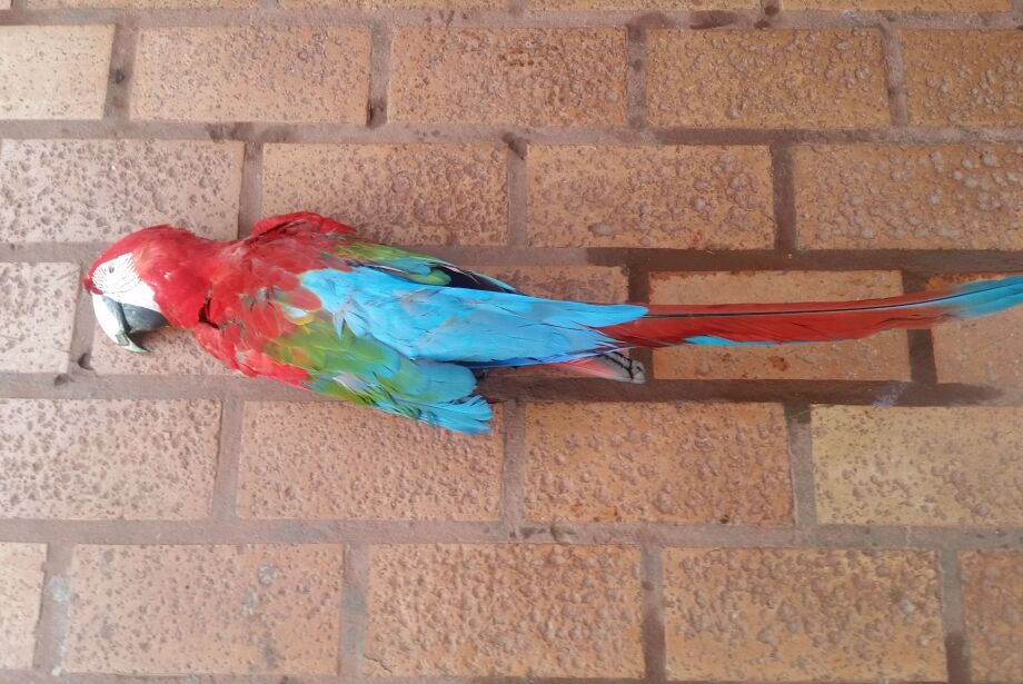 Uma arara-vermelha morreu eletrocutada ao bater em um fio de alta tensão, em área rural de Sidrolândia. o fazendeiro Waldivino Inário Sandim, de 75 anos, foi quem presenciou o acidente. Ele, que tem uma fazenda no município, levou o animal até o quartel da Polícia Militar Ambiental (PMA), em Campo Grande.