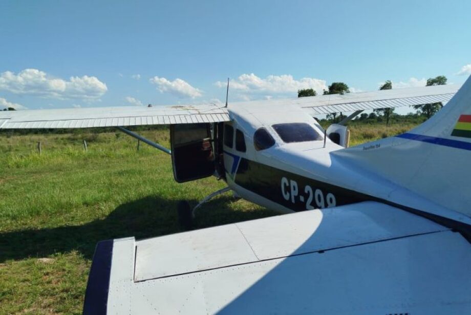 Conforme a Polícia Militar, a equipe de Força Tática do 11º BPM recebeu informação sobre uma aeronave suspeita e deslocou-se imediatamente até a fazenda, com apoio do Departamento de Operações de Fronteira (DOF), onde foi encontrada a aeronave boliviana, de prefixo CP-298.
