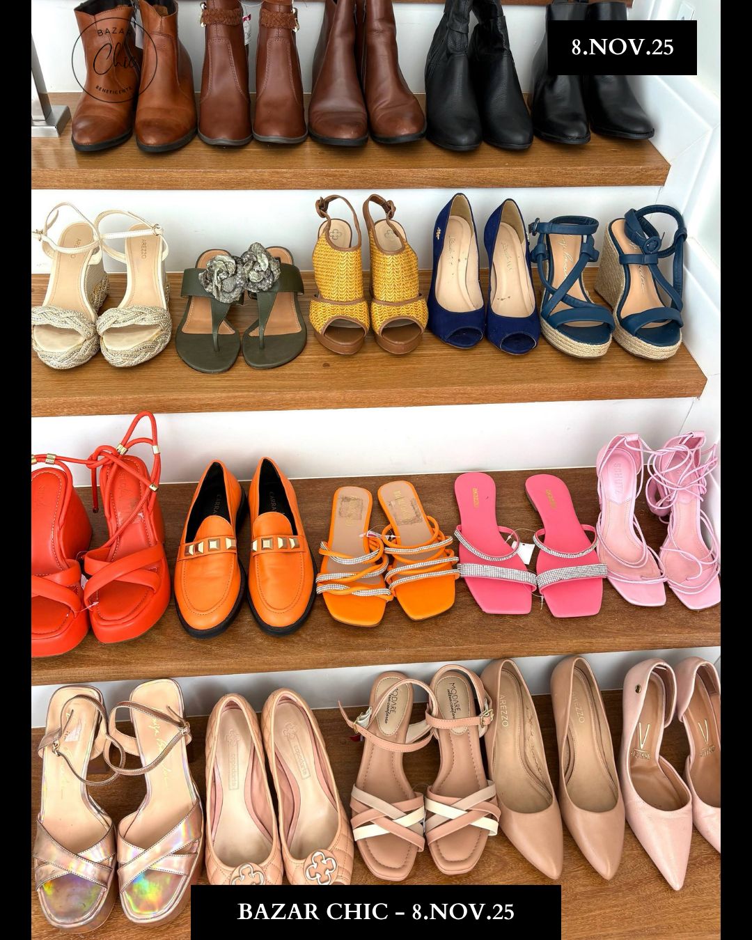 Sapatos de marcas famosas que estarão à venda no Bazar Chic. Foto: divulgação