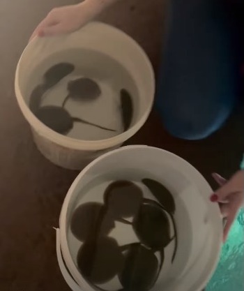 Algumas das arraias filhotes. Foto: Divulgação/Bioparque Pantanal“Primeiro dia do ano de 2024 e nós tivemos a grata surpresa da nossa arraia Jussara, que tanto alegrou os novos visitantes. Ela teve bebês, foi a maior história de reprodução aqui do Bioparque, 14 filhotinhos! Que coisa mais linda!”, exclamou a diretora do complexo de águas.