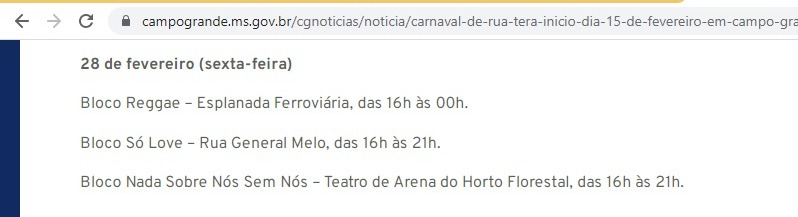 "O nosso bloco já é semana que vem, ele vai abrir o carnaval da Esplanada aqui de Campo Grande, e todos os veículos de comunicação dessa cidade estão ignorando a existência do nosso bloco. Não mencionam ele em páginas, não mencionam ele na televisão, e estão falando que o Carnaval começa no dia 1º de março, mas ele começa no dia 28 [de fevereiro] com o Farofolia", desabafou Abhner.