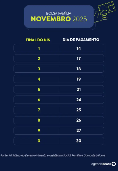 A Caixa Econômica Federal finaliza, nesta sexta-feira (28), o pagamento da parcela de novembro do Bolsa Família. Recebem hoje os beneficiários com Número de Inscrição Social (NIS) terminado em 0, encerrando o cronograma regular do mês.