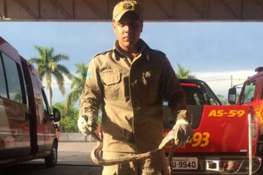 Equipe do Corpo de Bombeiros capturou ontem jiboia de um metro e meio que estava na varanda de uma residência localizada no Bairro Universitário, em Corumbá.