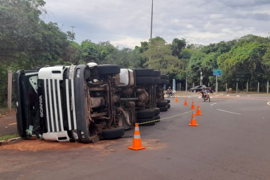 O motorista seguia pela Avenida do Poeta com a com a rua Dr. Abdall Duallibi quando acessou a rotatória, e o caminhão Scania 380, ano 2007, acabou tombando. O destino da carga seria Corumbá, município localizado a 425 quilômetros de Campo Grande.