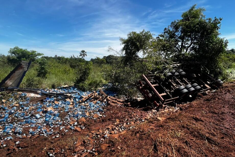 Na manhã desta terça-feira (19), um motorista de caminhão bitrem, que estava carregado com cervejas, capotou com sua carga a 2 km da Fazenda Planalto, na rodovia MS 040, em Campo Grande.