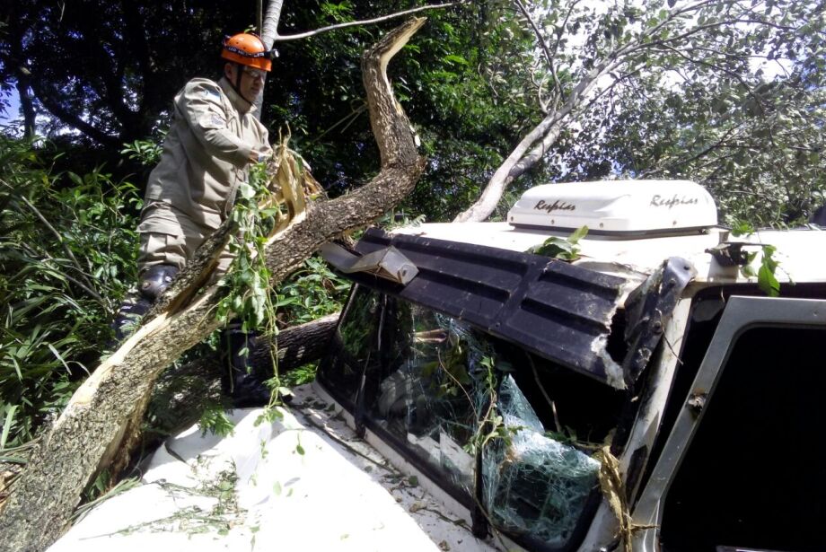 Motorista, de 56 anos, estava sozinho no veículo e teve apenas corte em um dos braços. Depois do acidente, ele subiu a ribanceira e pediu carona até a cidade. Equipe do Corpo de Bombeiros foi acionada para ajudar a retirar o veículo do local.