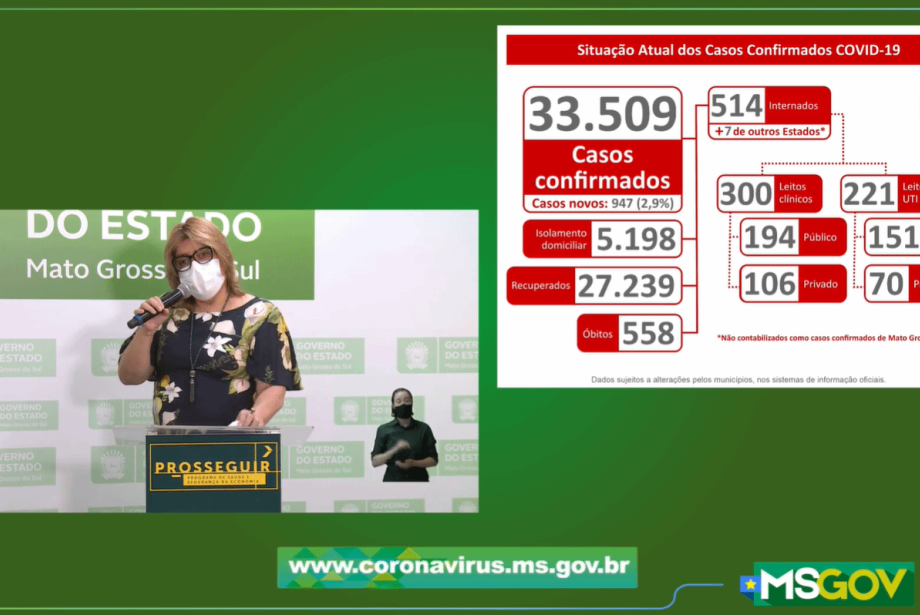 Nas últimas 24h foram 947 novos contágios da doença, Campo Grande com 429 encabeça a lista e é seguida por Três Lagoas com 56, Corumbá com 54 Miranda com 52 e Sidrolândia 37.