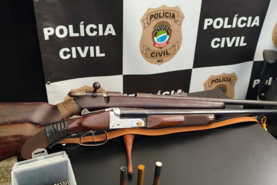 Na casa do gerente, durante buscas acompanhadas pela esposa dele, foram encontradas duas armas de fogo e munição, além de diversos insumos utilizados para recarga de munições, como pólvora, chumbo, espoletas e cartuchos. A esposa informou não possuir documentação referente às armas de fogo.