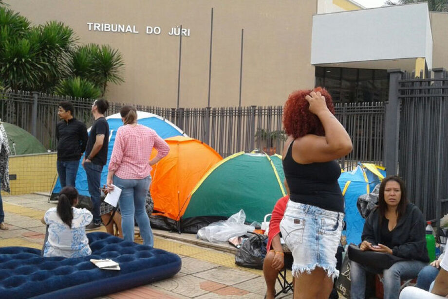 Depois da marcha por avenidas da cidade ontem, parte do grupo montou barracas e passou a noite em frente ao Fórum, na Rua da Paz. Cerca de 22 pessoas amanheceram nas barracas.