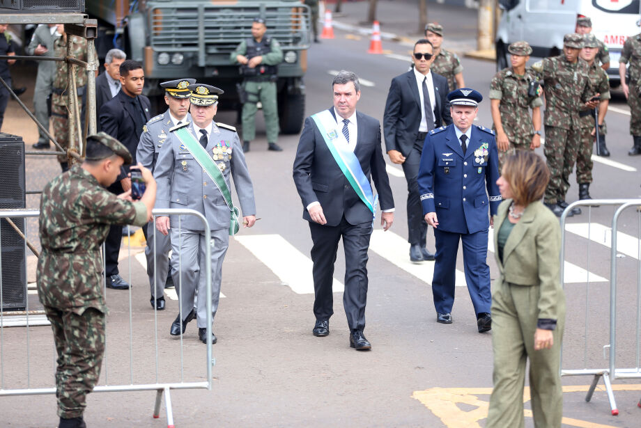 Eduardo Riedel acompanhou todo o desfile acompanhado de diversas autoridades, como o general do Exército Luiz Fernando Estorilho Baganha, do Comando Militar do Oeste (CMO), o comandante da Base Aérea de Campo Grande (BACG), brigadeiro do ar Eric Brevigleri, e o comandante do 6° Distrito Naval, o contra-almirante Iunis Távora Said.