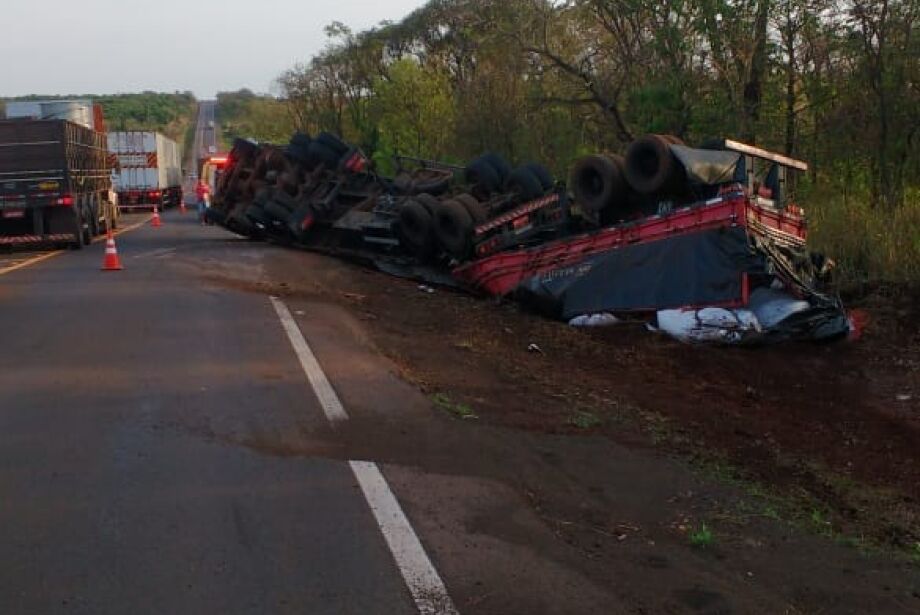 Um carreta articulada tombou na manhã desta sexta-feira, na BR-163, entre Jaraguari e Bandeirantes, e o motorista saiu ileso. O socorro foi acionado como medida de segurança e um guincho também vai ao local para fazer a retirada do veículo. Este acidente confirma o levantamento divulgado pelo Ministério da Saúde em que motociclistas e caminhoneiros são os que sofrem mais acidentes de trânsito em todo o país, sendo que os condutores de veículo pesado são os que mais morrem em atividade.