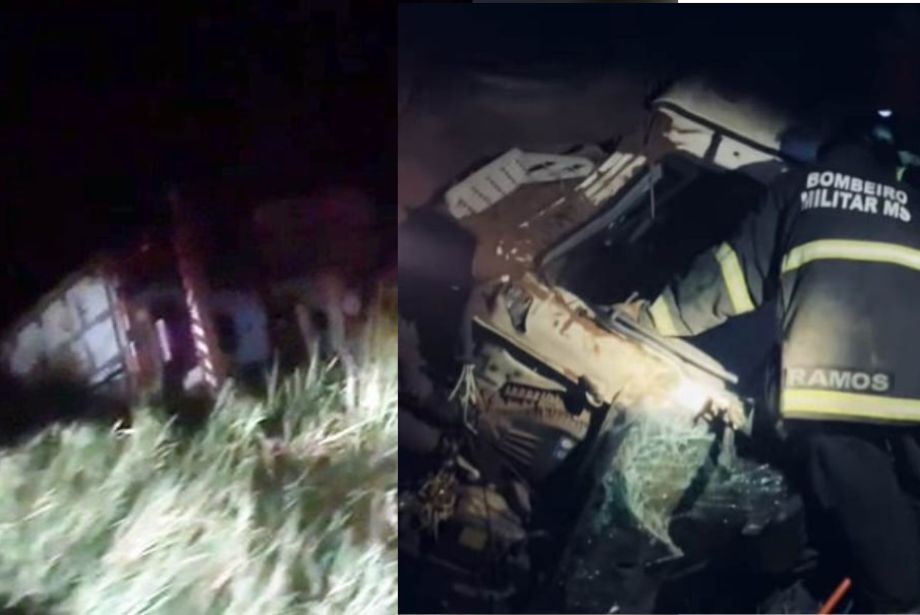 Carreta carregada de carne tomba e motorista morre na MS-386