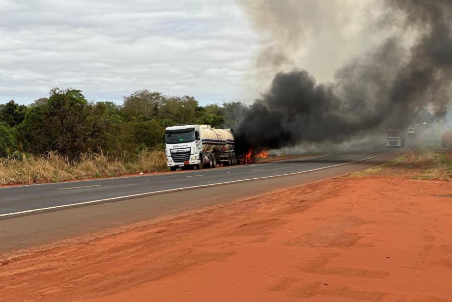 Vídeos mostram carros desviando da situação registrada em trecho da BR-267, no interior de Mato Grosso do Sul, por possível aquecimento de freio em veículo