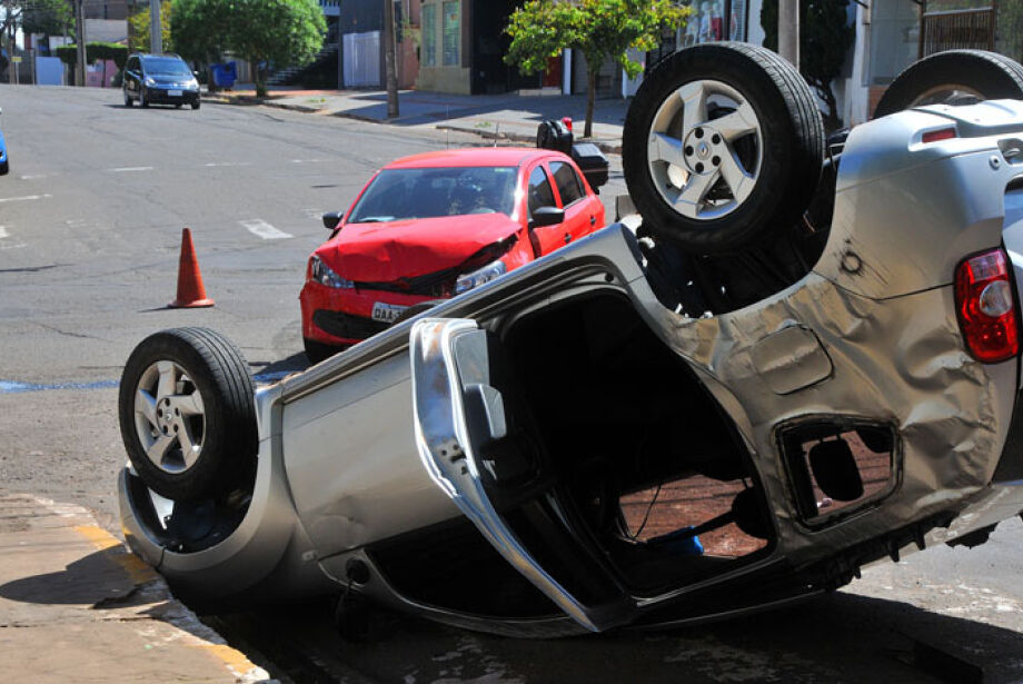 Carro capota em colisão na Rua 25 de Dezembro