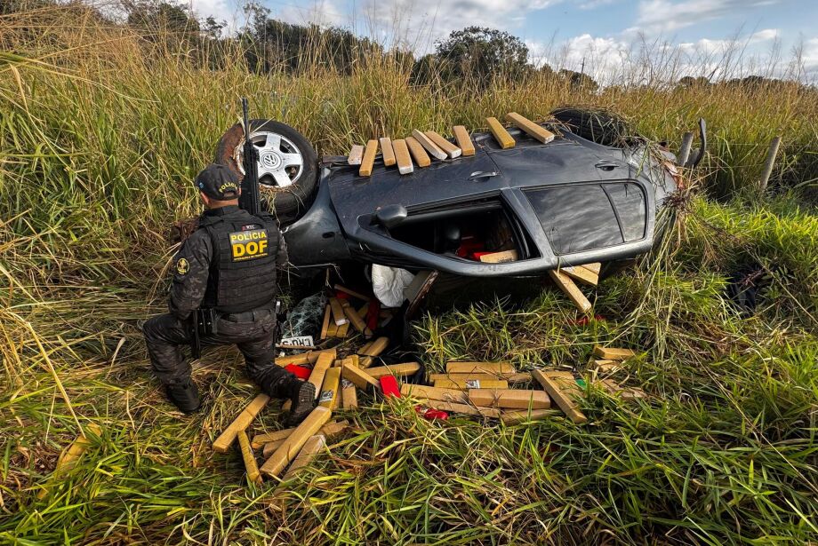 Carro carregado com 850 quilos de maconha capota durante fuga na rodovia