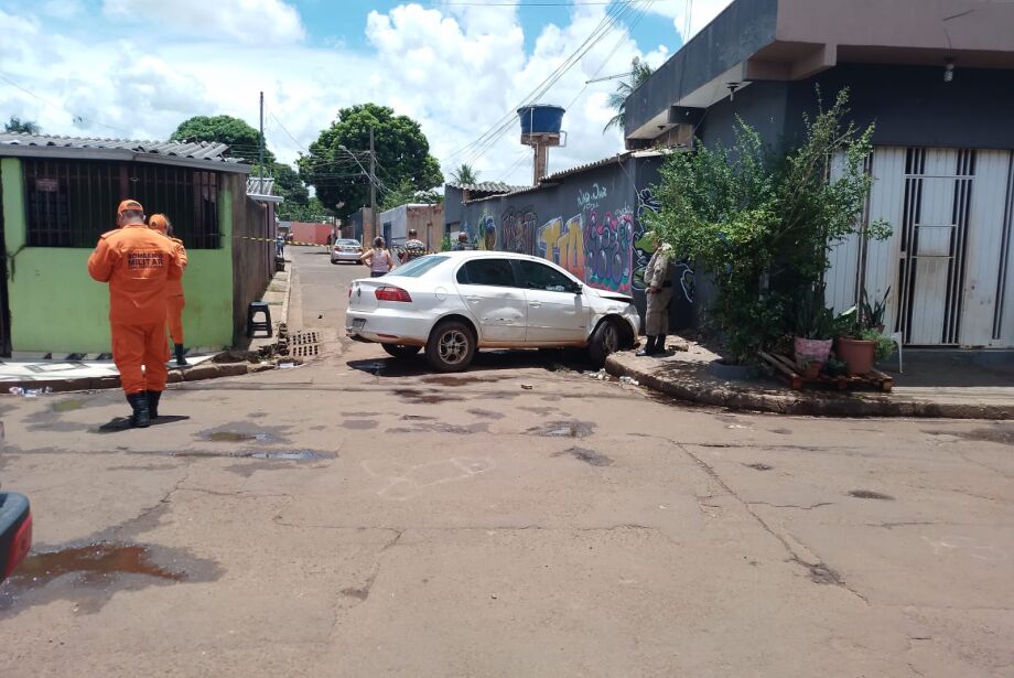 O carro havia colidido com o meio-fio próximo à rua Sol Nascente após ser atingido pelos disparos.
