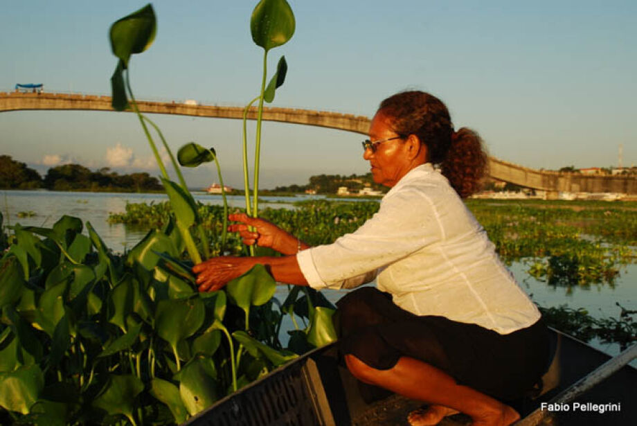 "Na canoa, ela seleciona cuidadosamente cada caule de uma rama de aguapé que tira do rio e não extrai mais que três talos da mesma planta, com as mãos, sem utilizar quaisquer ferramentas: 'Senão a planta morre', diz ela. (...) 'Tem que cuidar com cobra, além da sucuri tem a boca-de-sapo. Fica escondida no aguapé, enroladinha. Minha mãe morreu picada de cobra. Quando for assim não pode levar susto, senão morre mais rápido', conta ela"
