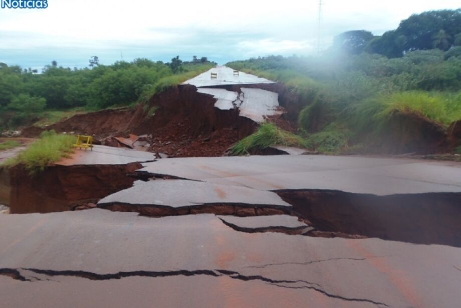 Chuva destroi rodovia e causa alagamento em Nova Andradina
