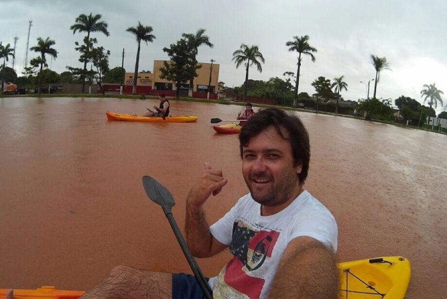 Em Batayporã, como forma de protesto, o morador Milan Trachta e amigos saíram de caiaque por várias ruas alagadas em razão do transbordo da Lagoa do Sapo, que somente neste mês de fevereiro inundou três vezes a cidade.