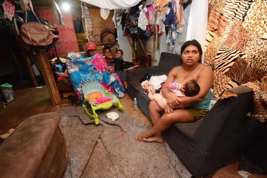 Desempregada, divide a casa com a mãe, Sandra Maria Pereira (63) e os seis filhos, todos menores. Questionada sobre como se protegem do frio, a diarista disse que conta com auxílio de vizinhos e lonas. “ Se tivesse que me proteger do frio, juntava meus filhos em uma cama, e dormiria com minha mãe e a bebê de sete meses no meu quarto'', relatou Sandra Micaela.