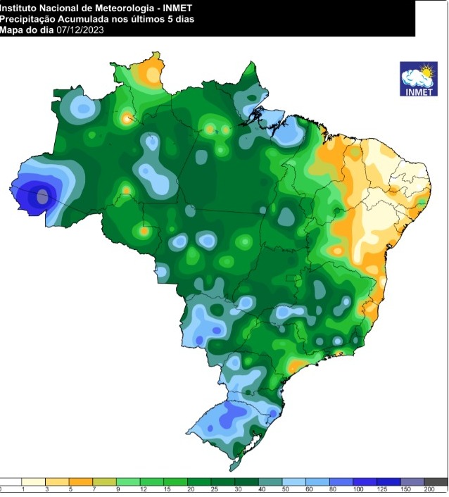 Justamente a combinação das altas temperaturas vistas até então, aliadas à alta umidade relativa do ar, que dificultam que o tempo "firme" em Mato Grosso do Sul, com os acumulados de chuva até o domingo podendo chegar a 50 mm/24h, esperando ainda até 100 mm até o próximo dia 15, com destaque para as regiões sudeste, leste e nordeste de MS.