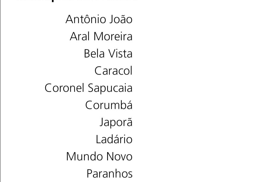 Os 13 municípios fronteiriços que participaram da pesquisa foram : Corumbá, Ladário, Porto Murtinho, Caracol, Bela Vista, Antônio João, Ponta Porã, Aral Moreira, Coronel Sapucaia, Paranhos, Sete Quedas, Japorã e Mundo Novo.
