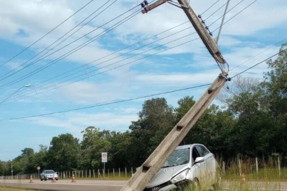 Com o impacto, o veículo ficou atravessado na pista e a estrutura do poste de energia quebrou. Uma equipe da concessionária precisou ir até o local devido à parte da região apresentar oscilação no fornecimento.