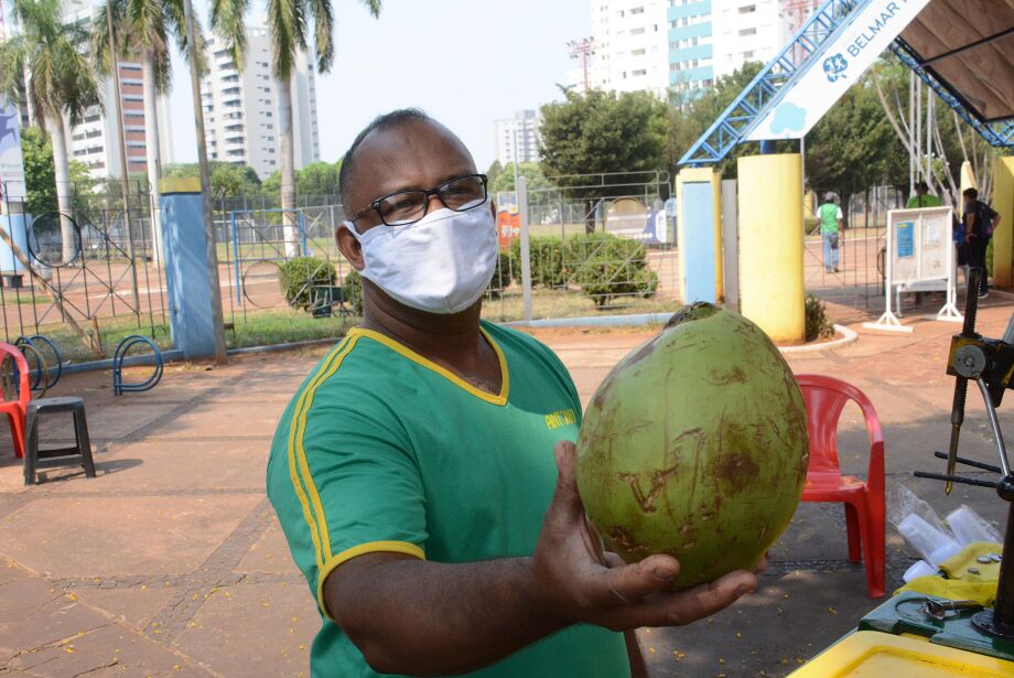 Calor pede refresco e se for natural, melhor ainda. Há 20 anos vendendo água de coco em um dos pontos mais movimentados para esporte e lazer no centro, Seo Antonio de Almeida, 50 anos conta que logo depois de reaberto, o Belmar Fidalgo, as vendas duplicaram. “Antes da pandemia nosso máximo era de 70 a 75 cocos por dia, agora estamos tendo uma média de 140 vendas de coco por dia, tá muito bom para a gente”, conta.