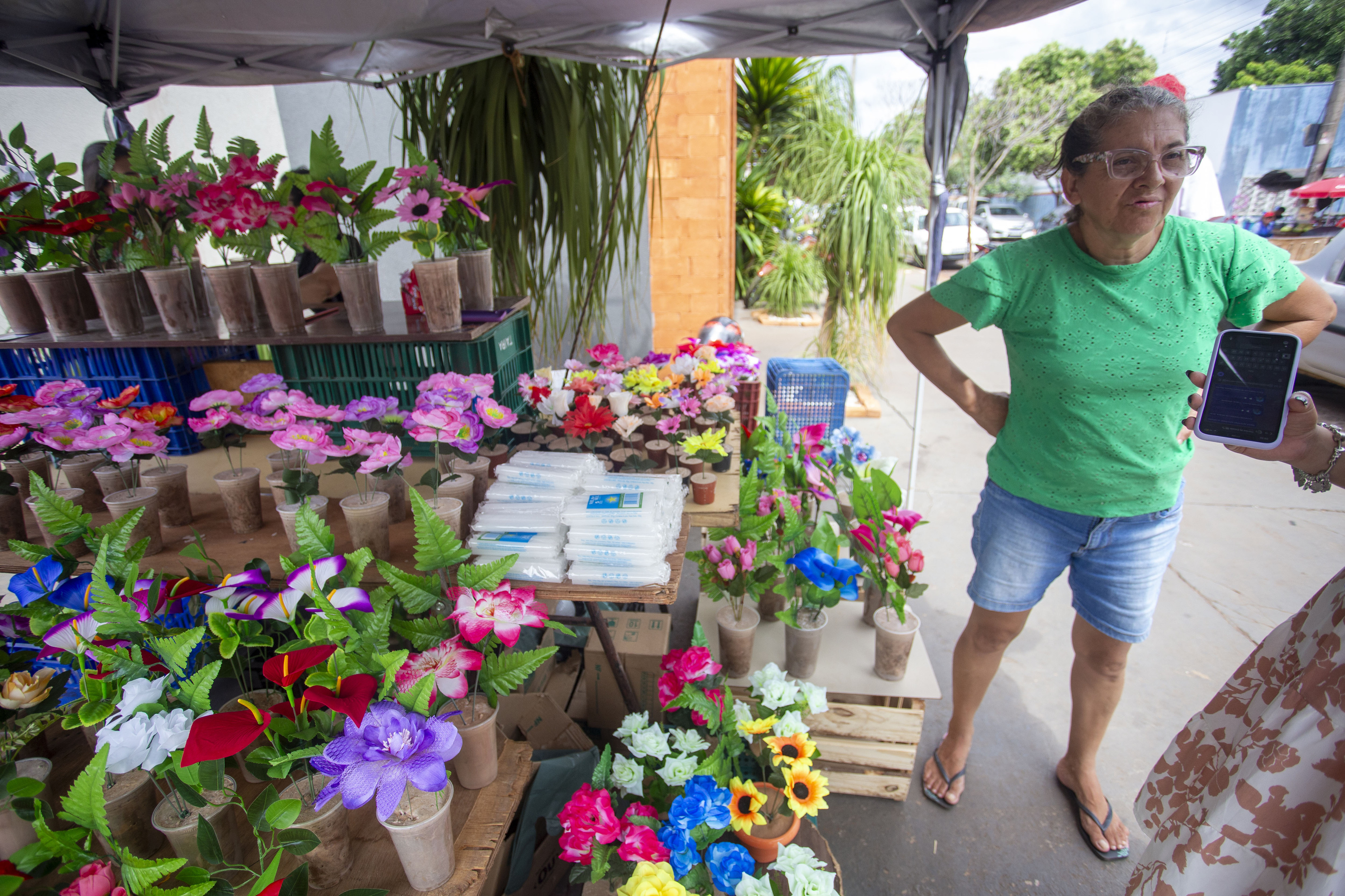 Além de comercializar flores e velas no Dia de Finados, ela também trabalha em outras datas comemorativas.
