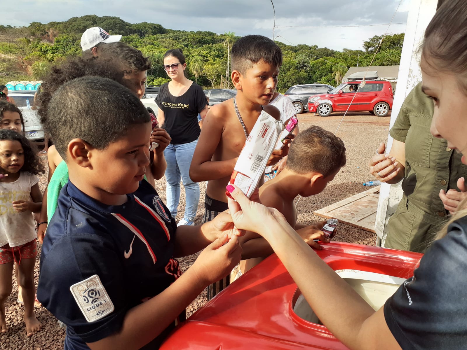 Elas também trouxeram kits de higiene e explicaram que compraram alguns picolés e a empresa Dale doou o dobro. “Então, a Dale hoje também participa da ação”, comemorou a dentista.