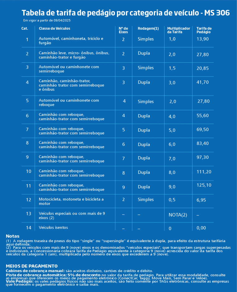Com os reajustes sofridos, seguem abaixo os seguintes preços praticados a partir de 09 de abril de 2025: