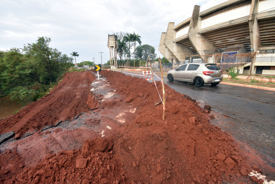A contenção da erosão em uma das margens do Rio Anhanduí iniciada ontem está focada no sentido bairro/centro, em frente ao Guanandizão, porém, outros trechos de desmoranamento de pista na avenida também receberão a medida feita pela prefeitura.