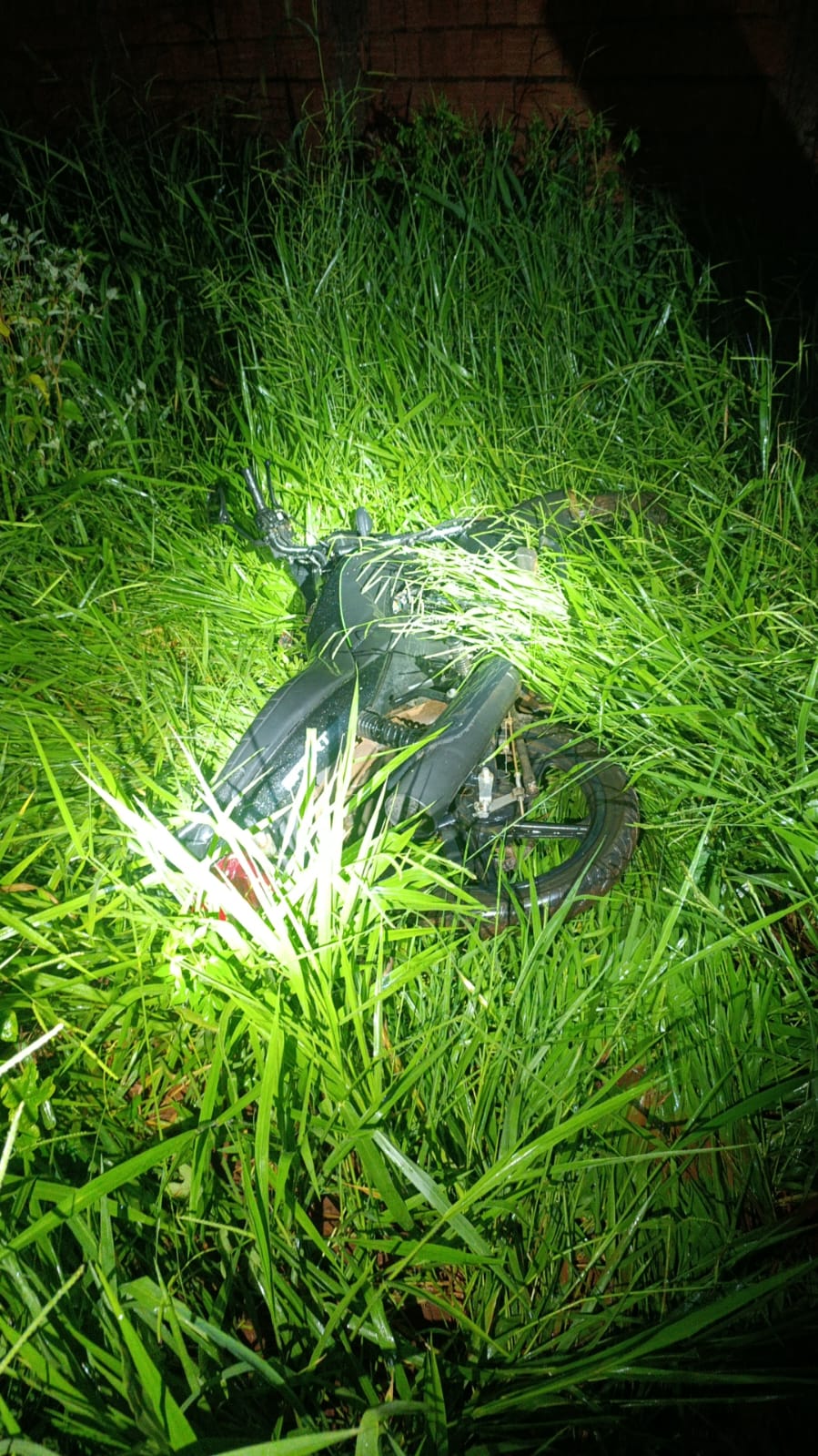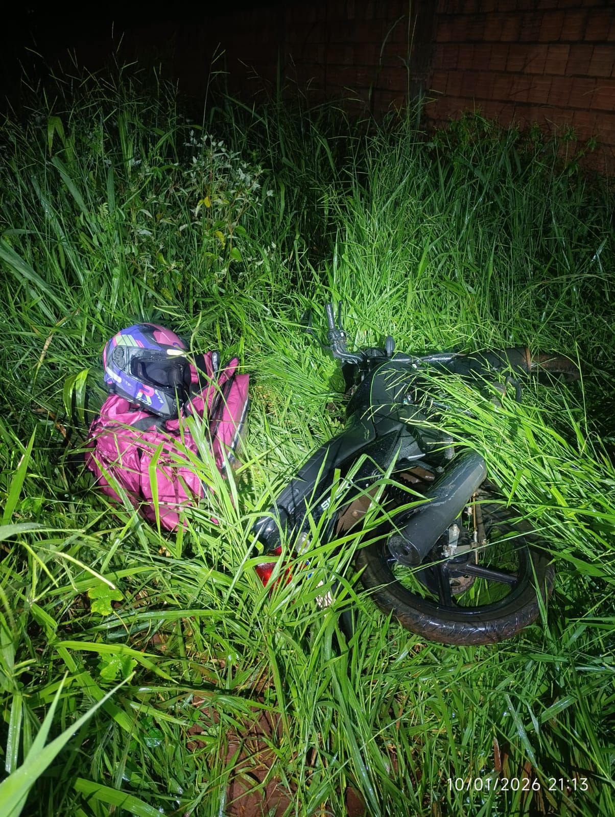 Os policiais do Choque foram até o local e localizaram a moto abandonada em um terreno baldio, com o capacete e a bag cor-de-rosa.