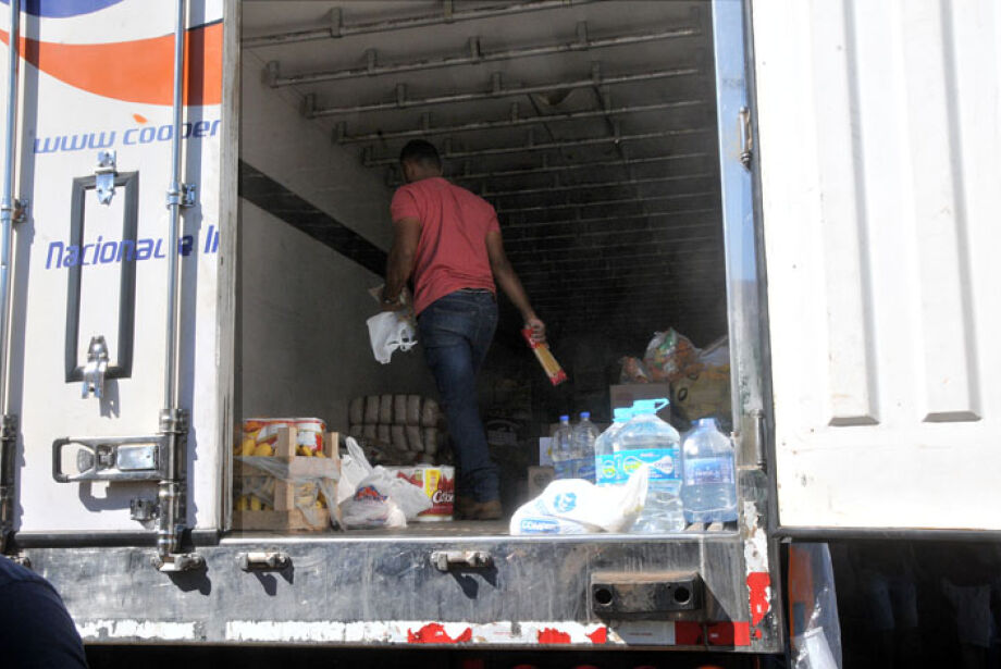 Para o almoço deste domingo o cardápio inclui churrasco, arroz, batata doce e verduras. No caminhão também há frutas, bolachas, refrigerantes e papel higiênico. A reportagem não encontrou nenhum tipo de bebida alcoólica no local.