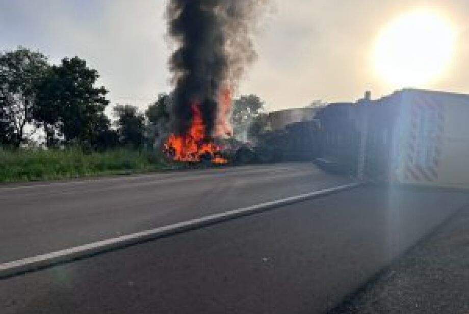 A rápida ação de um delegado da Polícia Civil evitou uma possível tragédia na manhã desta sexta-feira (13), na BR-262, a cerca de 15 quilômetros de Água Clara. Para retirar o caminhoneiro que ficou preso dentro da cabine de uma carreta em chamas após uma colisão, o delegado precisou disparar contra o vidro da porta do veículo para conseguir resgatá-lo.