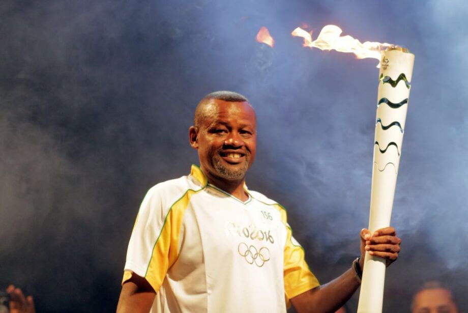 Depois de levar o fogo olímpico na água, a tocha foi entregue para o ex-atleta e corredor Zequinha Barbosa, que participou de quatro Jogos Olimpícos. Ele acendeu a pira montada em um palco.